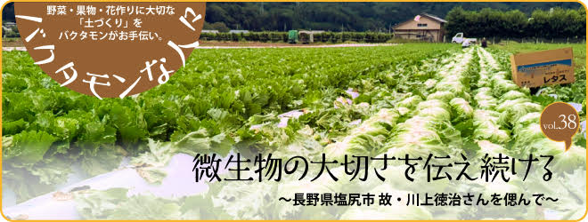 冷涼な気候を生かし、レタスやキャベツを作る塩尻は、早くから高原野菜の産地として発展してきました。誰もが大規模に、毎年大量の作物を作り続けるには、農薬と化成肥料を使うのが当たり前と考える中で、川上さんはいち早く、土づくりに疑問を感じるようになりました。