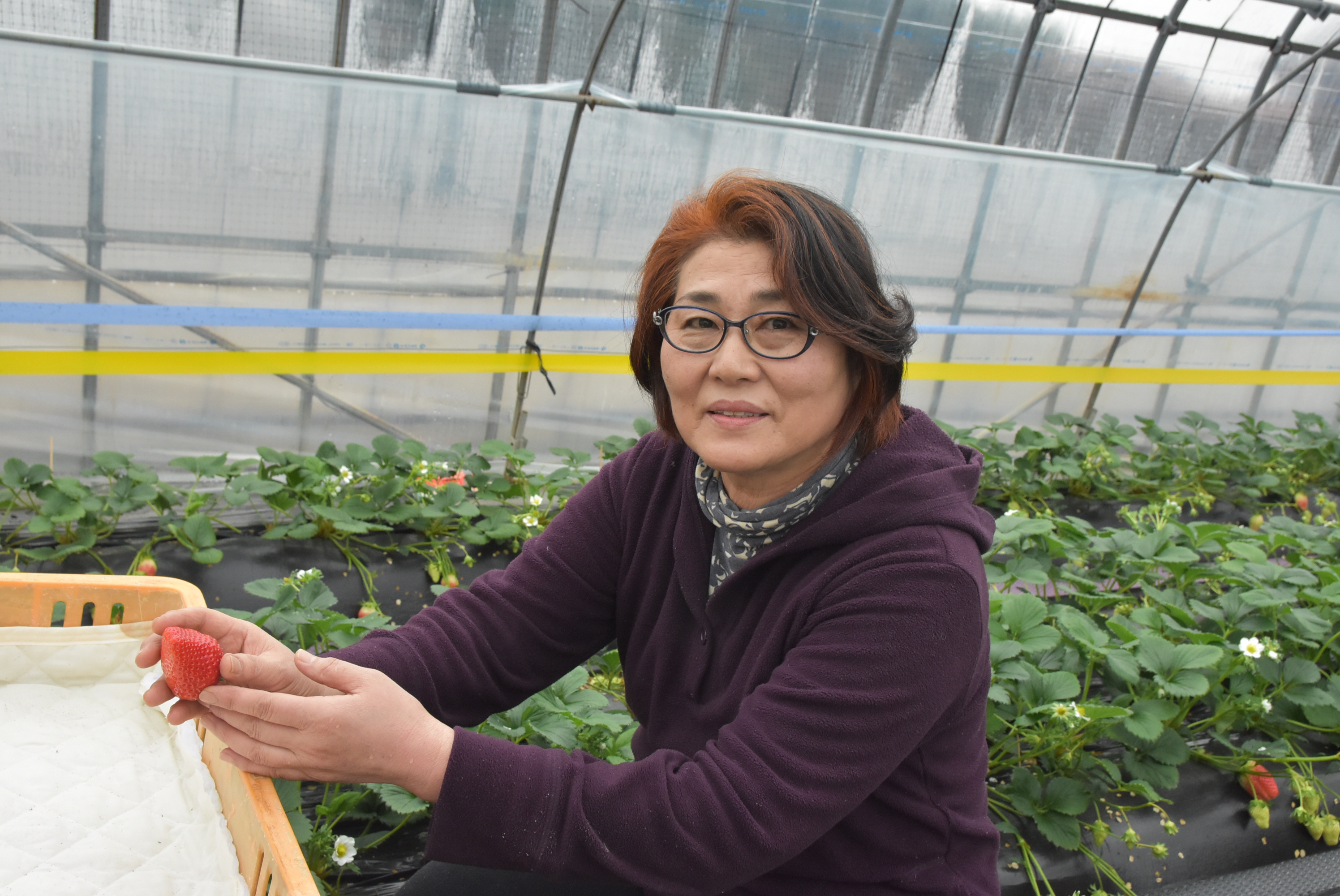 そんな「友の会」のメンバーに、遠藤美沙子さん(58歳)がいます。以前は会社に勤めていましたが、退職して夫の志伸さん(59歳)の両親が手掛けるイチゴハウスを引き継ぐことに。最初は1棟だけでしたが、妹尾さんや山崎さん、「友の会」の仲間たちと情報交換しながら栽培技術を取得して、すべてのハウスの管理を任されるまでになりました。