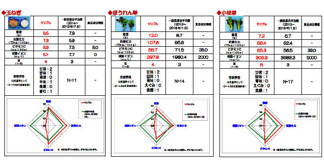 すると、測定の結果、玉ねぎの硝酸イオンは検出限界以下、ほうれん草は全国平均の6分の1以下、小松菜は10分の1以下という値が出ました。科学的に硝酸態窒素の低減に役立っていることがわかります。