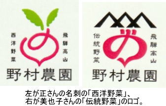 その高山市国府町で野菜を栽培している野村農園の野村正さん(57歳)、美也子さん(57歳)夫妻は、夫婦別々の名刺を持っています。それはよくある話。ところが、正さんの名刺には「西洋野菜」。美也子さんの名刺には「伝統野菜」と、別々のロゴが描かれているのです。これはどうしたことでしょう?